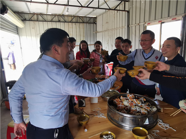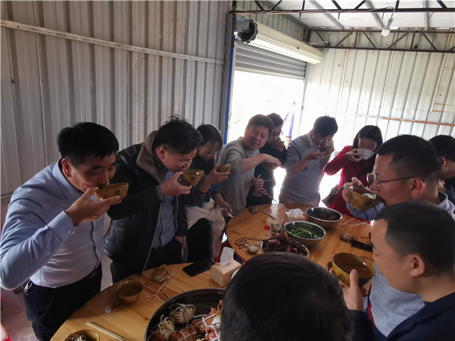 中午12點30分,大家一起享用美味的午餐。綠色的果蔬,配上濃郁香醇的米酒,歡樂的氣息充滿了整個房間。