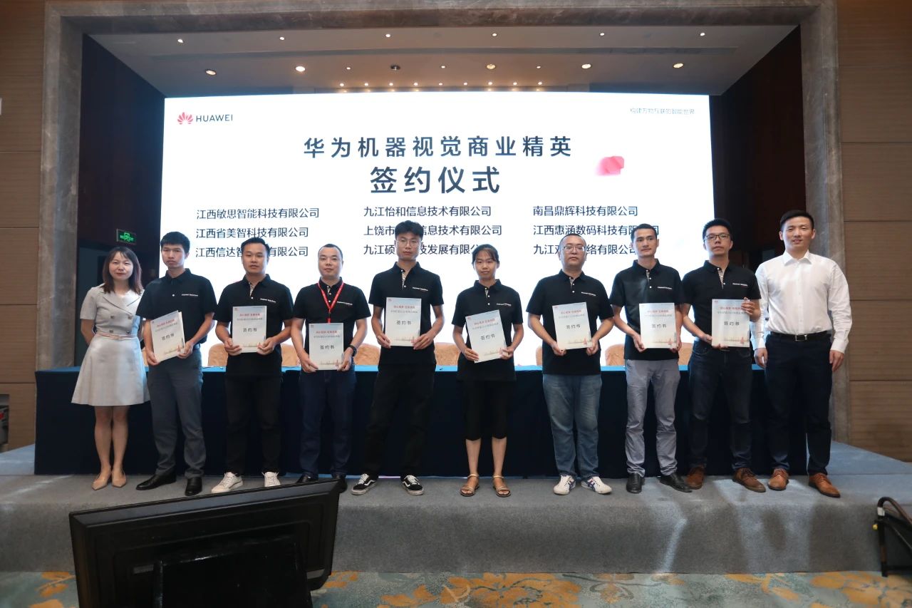 活動最后,江西5家合作伙伴被授予華為機器視覺分銷金銀牌證書;36家企業現場簽約加入華為機器視覺商業精英隊列,與華為一同開拓分銷市場。