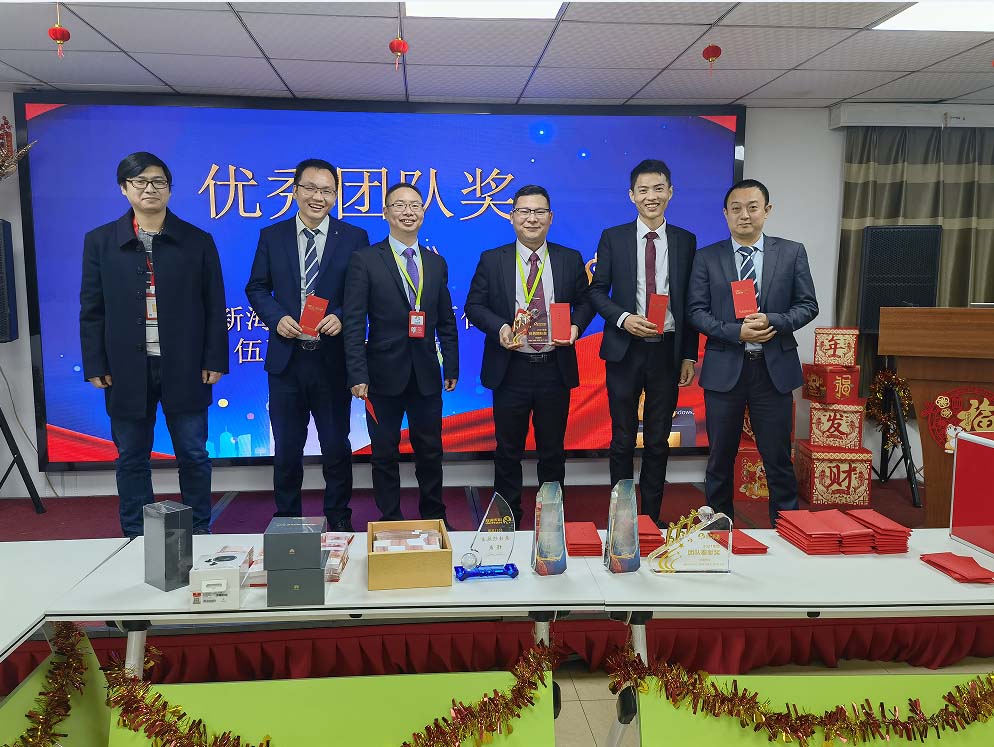 由優秀團隊獎獲獎者龔新海,萬仁唐,林孝和,伍飛飛,辜道歡上臺領獎,他們為這一年以來的努力奮斗和付出寫下了最完美的答卷!