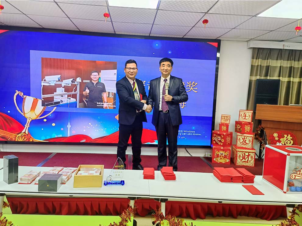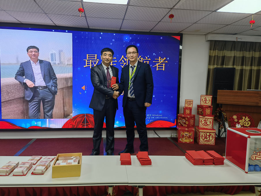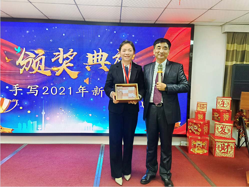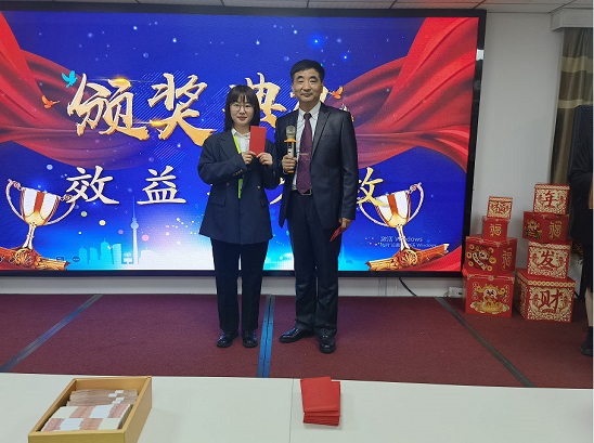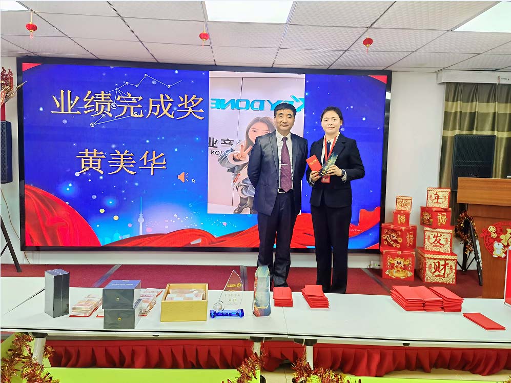 2021年,她帶領著他們的團隊,不僅超額完成了公司領導布置的任務,而且為項目今后的良性運作打下了堅實的基礎, 由業績完成獎獲得者黃美華上臺領獎,楊總頒獎