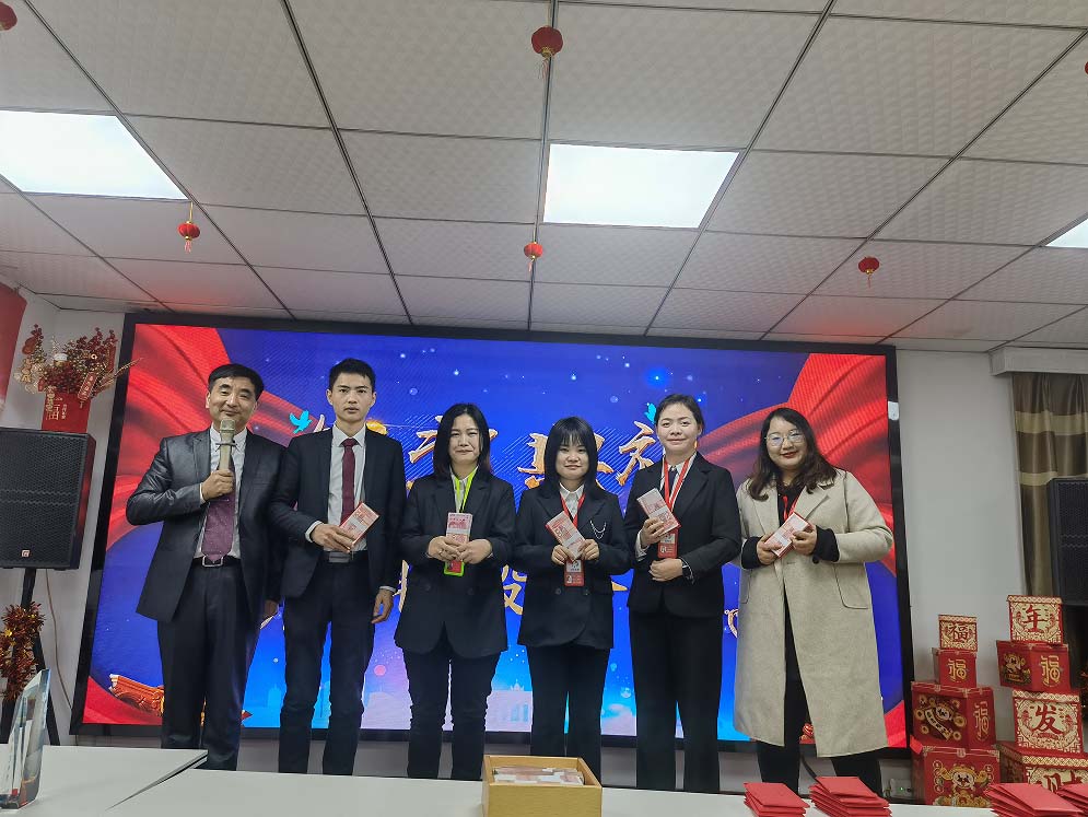 由楊總為員工頒發年薪獎金
