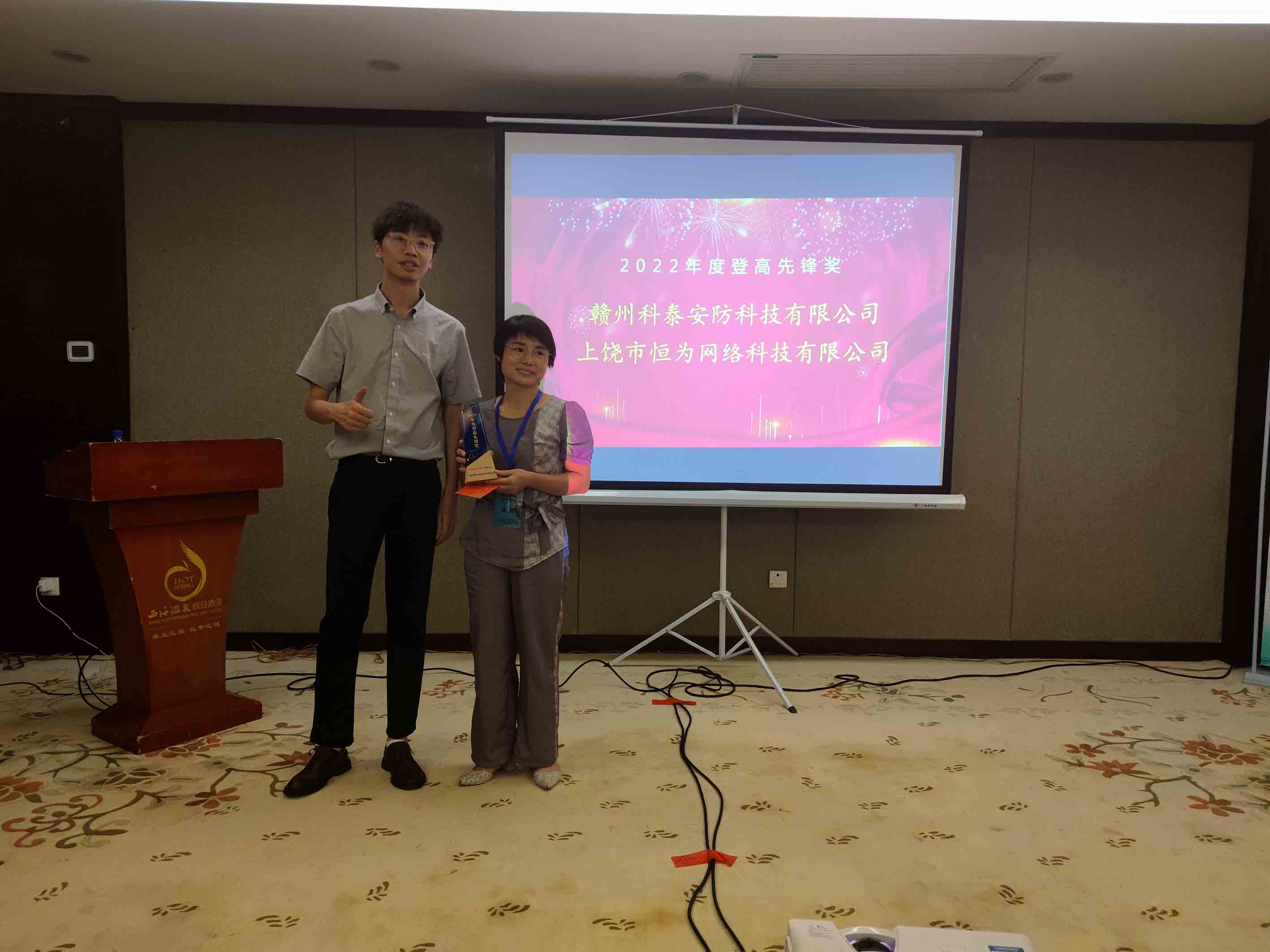 會上、上饒市恒為網絡科技有限公司和贛州科泰安防科技有限公司獲“2022年度登高先鋒獎”