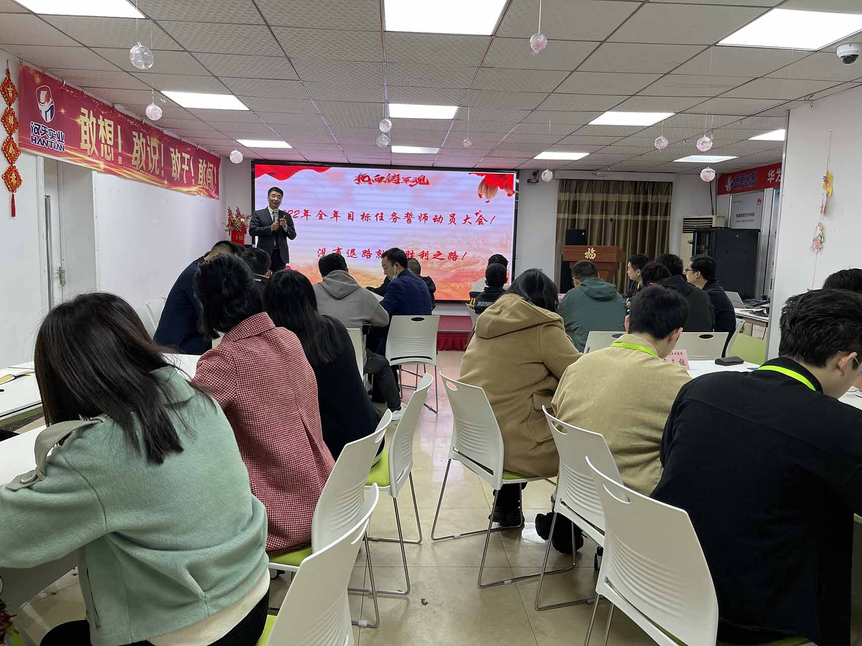 “沒有退路就是勝利之路”11月21日上午,漢天實業會議中心氣氛熱烈激昂,在此召開了“2022年全年目標任務誓師動員大會”。