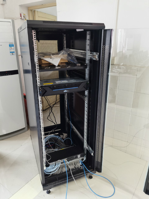 穿過熱鬧的操場,我們來到學校的機房。這是一個正在安裝中的機柜。