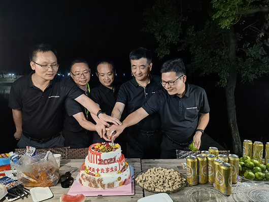 晚上我們滿心歡喜地慶祝了漢天實業十六歲生日,各位股東及楊總一起聯手切蛋糕!