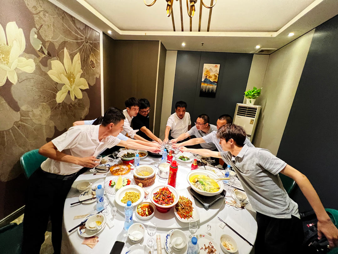 聚餐活動在一個家常菜館舉行,我們品嘗了各種家常美食,并享受了美酒佳釀,像在自己家里一樣輕松自在。酒足飯飽余間讓大家放松身心,更好地融入團隊,也讓我們更好地認識了彼此。