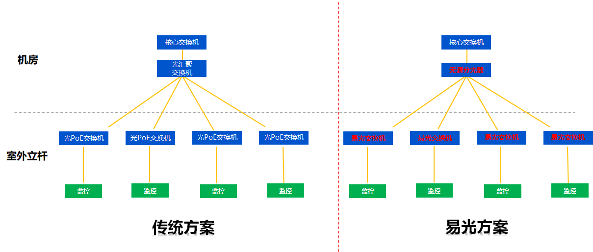 2、相比光纖收發器方案,故障節點減少60%以上,大幅降低維護成本