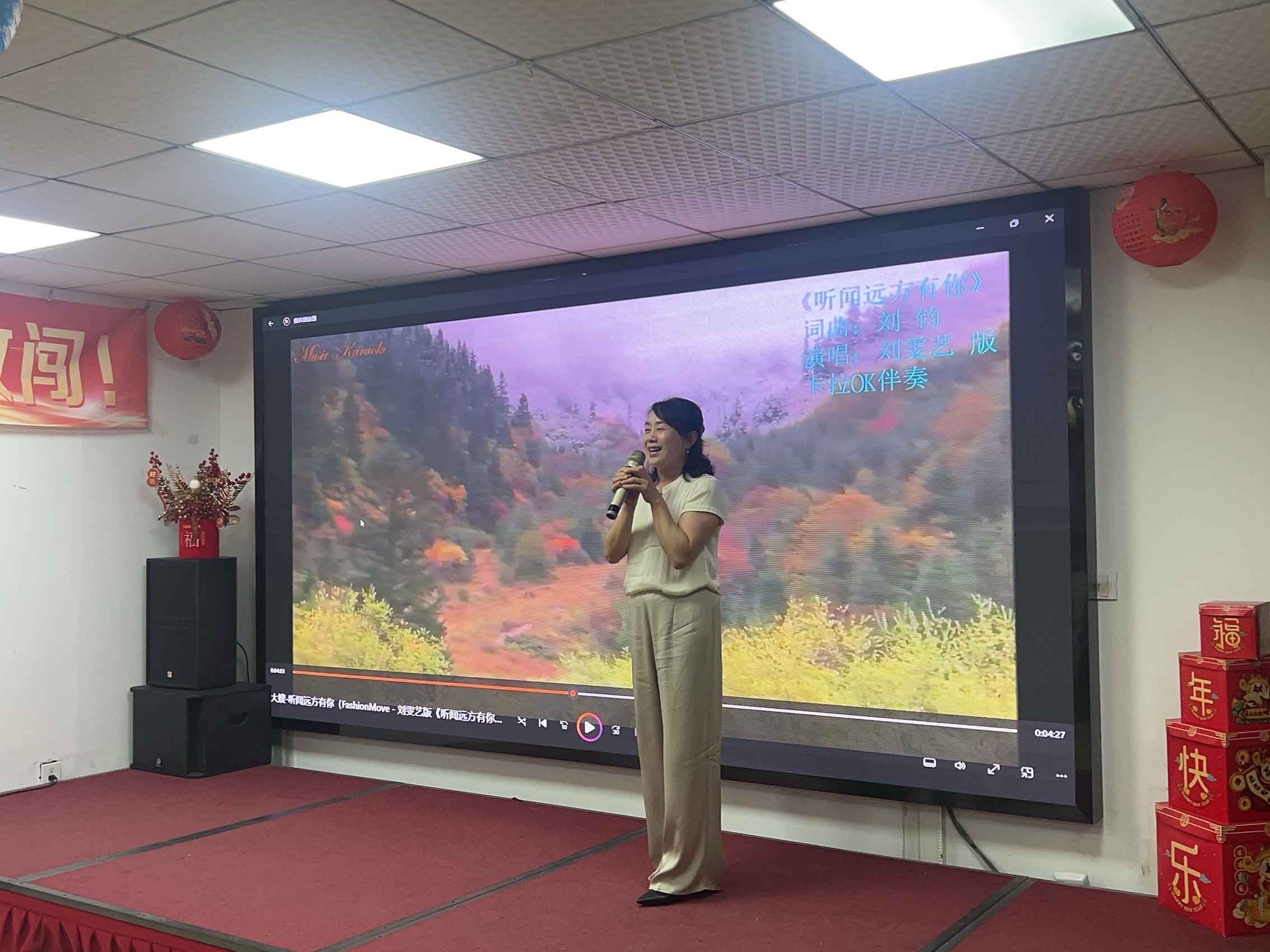 在公司中秋活動的歡聲笑語中,迎來了一個特別的表演環節,總經理的愛人,我們親切稱呼她為“大嫂”,以一首《聽聞遠方有你》的歌曲,為現場帶來了無盡的溫暖與感動。她的歌聲如同涓涓細流,緩緩流入每個人的心田,讓人不禁想起遠方的親人、朋友,以及那些美好的回憶。